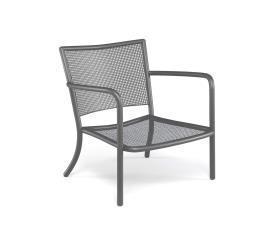 Emu Réf. 3416 Dimensions : l 74 x h 78 x p 78 cm La ligne Athena en acier propose des meubles lounge de style classique, pour une atmosphère conviviale qui ne renonce pas au style et se distingue par un motif ornemental unique en tôle tressée, qui confère élégance et un caractère particulier à la collection. Les formes enveloppantes et douces des sièges et chaises lounge s’associent avec délicatesse et une élégance équilibrée. Material: Acier Collection: Athena Coussins pour cette collection: C/3416 Coussin d'assise et de dossier en acrylique Coussins supplémentaires: C/701 Coussin décoratif 40x40 - C/705 Coussin décoratif 45x35 - C/706 Coussin décoratif 60x40 Poids: 9.1 Kg chauffeuse