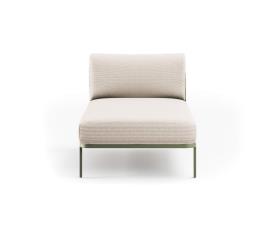 Emu Réf. 5037 / C/5037 - Design. Lucidi-Pevere Dimensions : l 75 x h 75 x p 144 cm Cabla, design Lucidi-Pevere, est un système d’éléments rembourrés modulaires et assemblables conçus pour obtenir de nombreuses configurations grâce à seulement 3 modules : siège linéaire unique, chaise longue et accoudoir. L’âme métallique de sa structure en acier inoxydable, fruit du savoir-faire historique d'EMU, s’unit au confort et à la richesse des couleurs des tissus d'extérieur, pour une ductilité compositionnelle et expressive maximale dans différents contextes, y compris marins. Material: Acier Collection: Cabla Coussins pour cette collection: C/5037 Coussin d'assise et de dossier Coussins supplémentaires: C/701 Coussin décoratif 40x40 - C/705 Coussin décoratif 45x35 - C/706 Coussin décoratif 60x40 Poids: 24.4 Kg méridienne