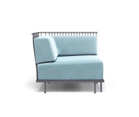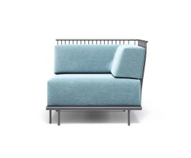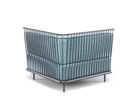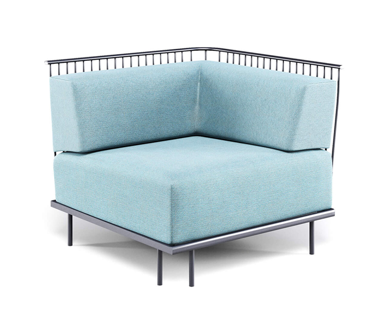 Emu Réf. 1084 - Design. Gargano-Cristell Dimensions : l 90 x h 79 x p 90 cm Le système d'assise Cannolè d'Anton Cristell et Emanuel Gargano a une structure entièrement soudée composée de tubes en acier galvanisés à l'intérieur et à l'extérieur. Siège composé d'une grille de tige galvanisée soudée sur un encadrement d'armature. Les pieds sont en acier tubulaire. Soudage MIG, pré-traitement de dégraissage et de cataphorèse et finition en poudre thermodurcissable polyester. Tous les coussins Cannolè sont faits de caoutchouc polyuréthane auquel est ajoutée une couche de résine de fibre de polyester, le tout emballé dans une taie d'oreiller interne en polyamide imperméable. Material: Acier - Tissus Basic - Tissus Exclusive - Tissus Standard Collection: Cannolè Coussins pour cette collection: C/1084 Coussin dossier angulaire - C/1085 Coussin de siège angulaire Coussins supplémentaires: C/701 Coussin décoratif 40x40 - C/705 Coussin décoratif 45x35 - C/706 Coussin décoratif 60x40 canapé module angulaire