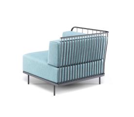 Emu Réf. 1083 - Design. Gargano-Cristell Dimensions : l 90 x h 79 x p 90 cm Le système d'assise Cannolè d'Anton Cristell et Emanuel Gargano a une structure entièrement soudée composée de tubes en acier galvanisés à l'intérieur et à l'extérieur. Siège composé d'une grille de tige galvanisée soudée sur un encadrement d'armature. Les pieds sont en acier tubulaire. Soudage MIG, pré-traitement de dégraissage et de cataphorèse et finition en poudre thermodurcissable polyester. Tous les coussins Cannolè sont faits de caoutchouc polyuréthane auquel est ajoutée une couche de résine de fibre de polyester, le tout emballé dans une taie d'oreiller interne en polyamide imperméable. Material: Acier - Tissus Basic - Tissus Exclusive - Tissus Standard Collection: Cannolè Coussins pour cette collection: C/1080 Coussin de siège - C/1081 Coussin dossier - C/1083 Coussin accoudoir gauche Coussins supplémentaires: C/701 Coussin décoratif 40x40 - C/705 Coussin décoratif 45x35 - C/706 Coussin décoratif 60x40 Poids: 23.80 Kg module terminal
