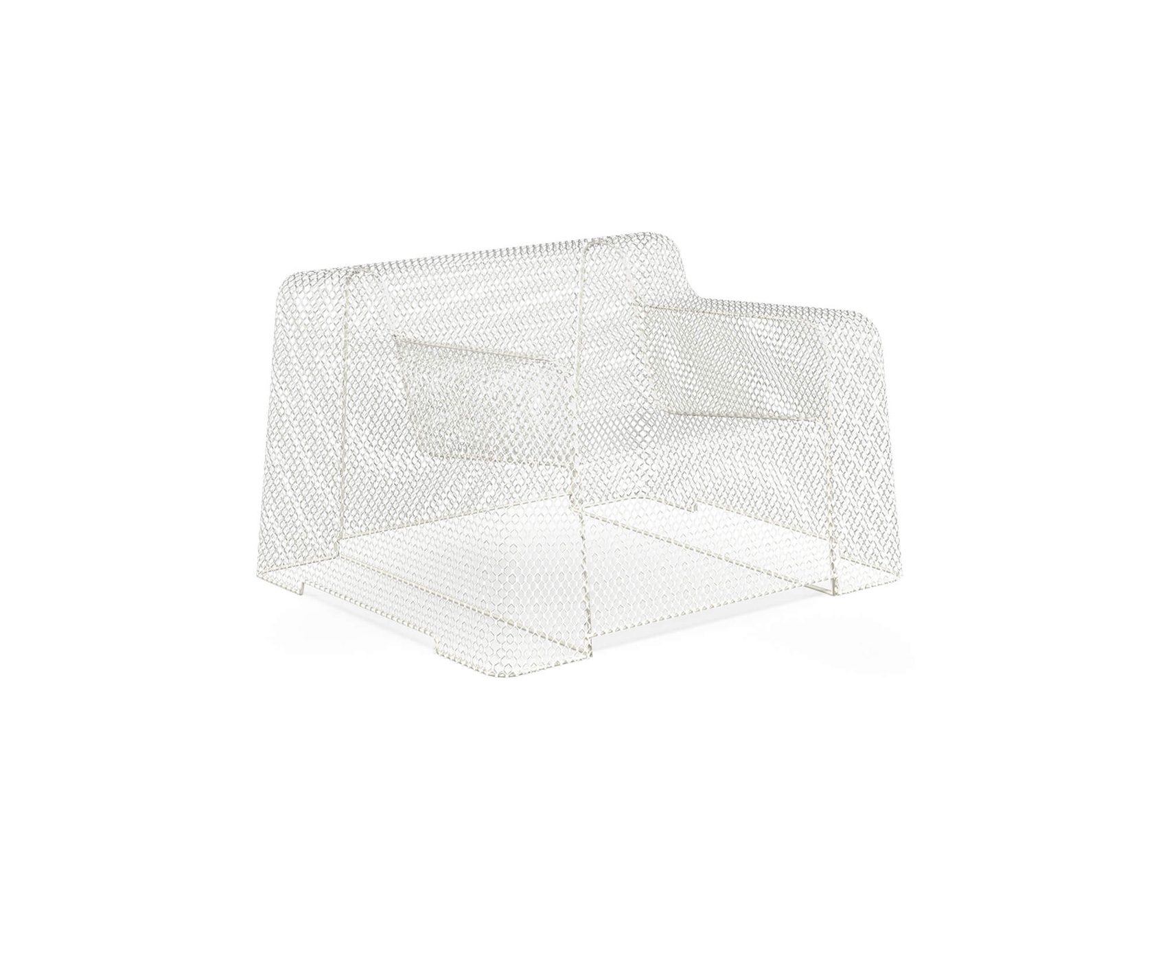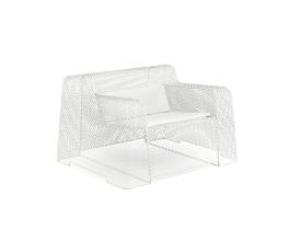 Emu Réf. 585 - Design. Paola Navone Dimensions : l 110 x h 66 x p 90 cm Interprète d’un nouveau concept de vie en extérieur - celui du salon en acier de style industriel - Ivy est une famille de meubles-sculpture au design linéaire et rigoureux, avec des sièges courbes et moelleux. La caractéristique de cette collection est la maille métallique en tôle d’acier étirée, qui crée de particuliers jeux de vides et pleins, pour un effet de légèreté aérien. Material: Acier Collection: Ivy Chauffeuse