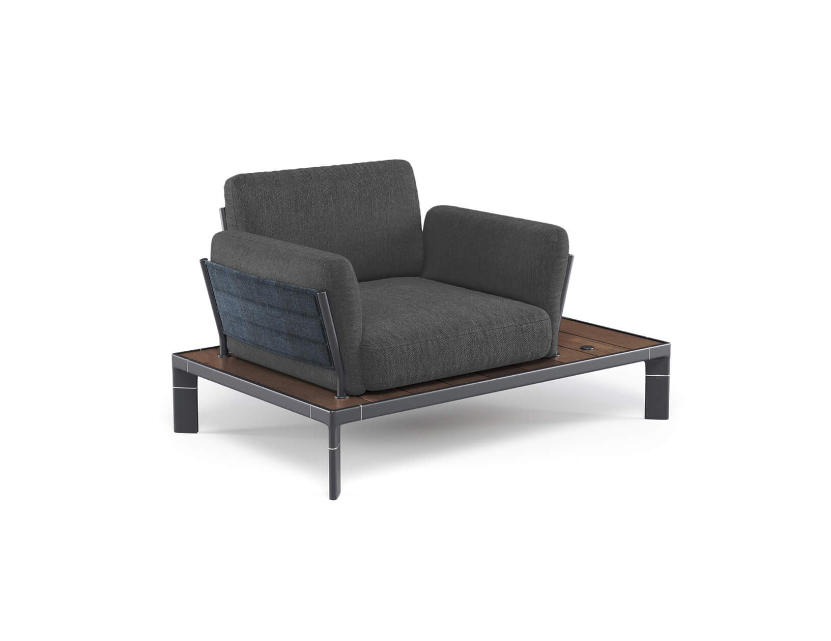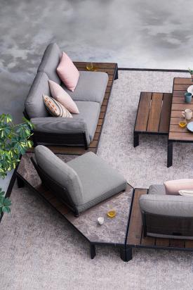 Emu Réf. 763 - Design. Patrick Norguet Dimensions : l 132 x h 84 x p 86 cm Le système de sièges Tami de Patrick Norguet a une structure de base comprenant deux profils spéciaux en alliage d’aluminium 6060 et des détails en acier inox AISI316. Des profils spéciaux ont été réalisés pour permettre de monter, par emboîtement, les lattes du plan d’appui. Les lattes peuvent être en bambou ou en WPC, un matériau composite à base de bois et de fibres de bambou recyclé ; il s’agit d’un matériau écodurable, résistant à l’eau et aux agents atmosphériques et bactériens, facile à nettoyer et 100% recyclable. Les dossiers et accoudoirs, dont les structures sont réalisées en tubulaires D28 et de plats 30 x 8 en alliage d’aluminium 6060, sont assemblés au moyen d’éléments spéciaux en nylon moulé. Matériel: Aluminium - WPC Collection: Tami Chauffeuse