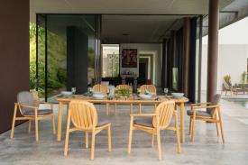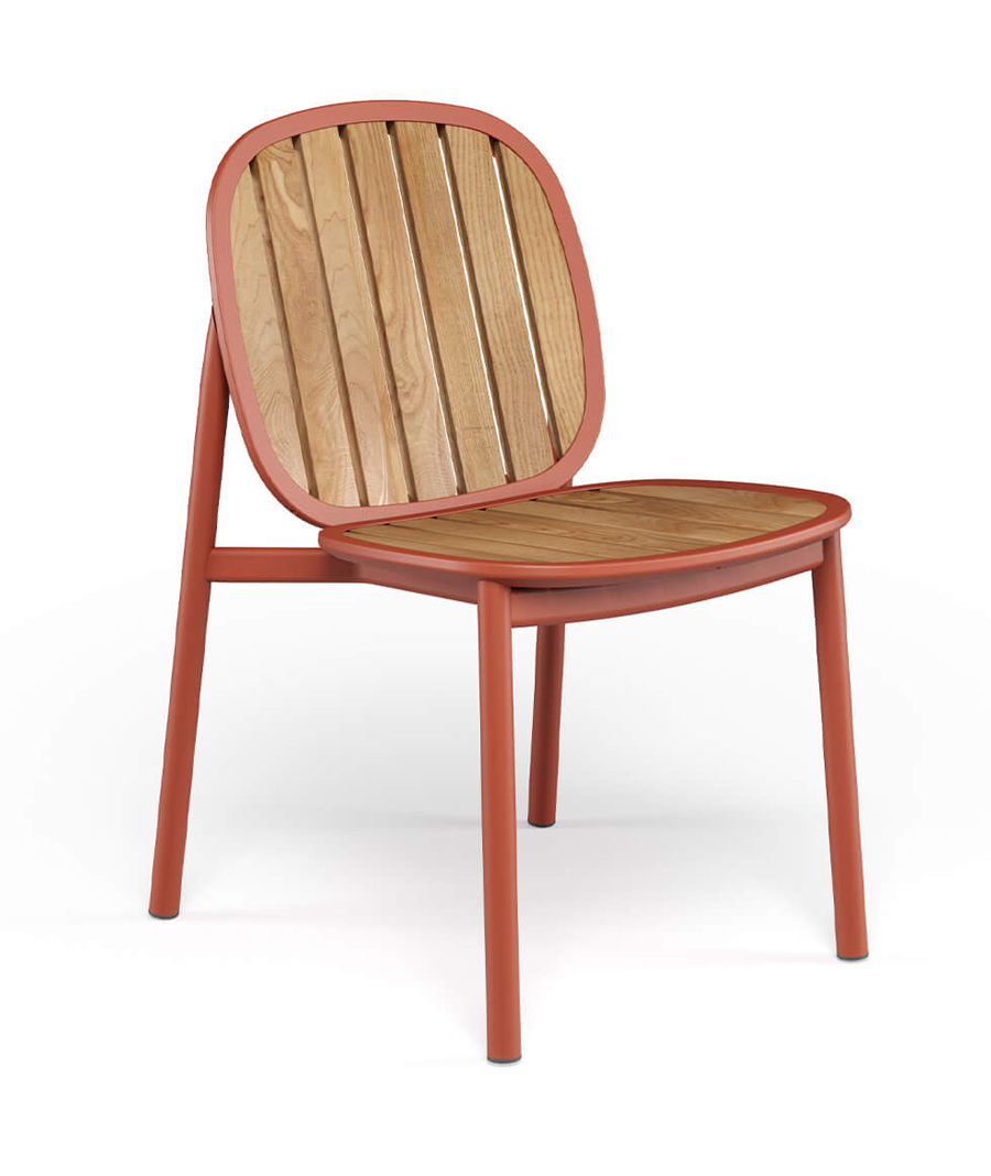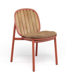 Emu Réf. 6040 - Designer: Sebastian Herkner Dimensions : l 54 x h 83,5 x p 62 cm La collection comprend deux versions jumelles: une entièrement en teck, et l’autre dans un material-mix intéressant entre le teck et l’aluminium, synthèse parfaite de la capacité de conception du designer et du savoir-faire d’EMU. Material: Aluminium - Teck Collection: Twins Coussins pour cette collection: C/6051 Coussin de siège - C/6052 Coussin d'assise et de dossier Poids: 7.30 Kg chaise