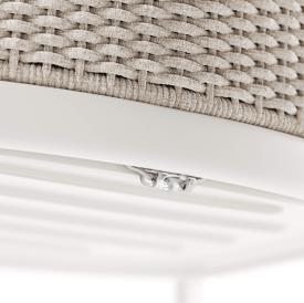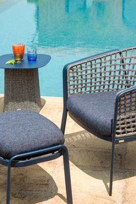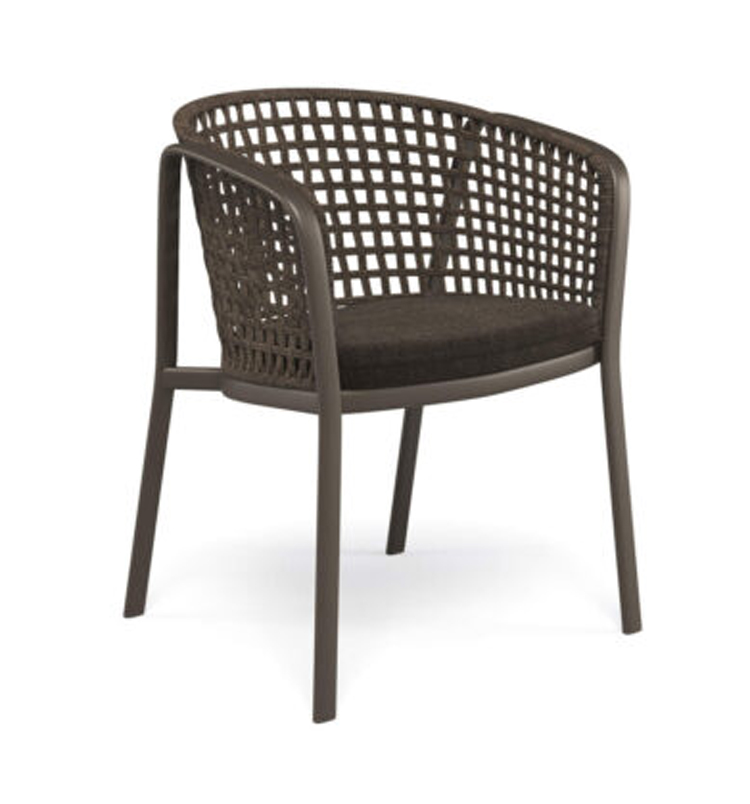 Emu Réf. 1213 - Designer: Sebastian Herkner Dimensions : l 61,5 x h 77 x p 52 cm La structure en chevalet est en tubulaire d’aluminium. Constituée d’une tôle en alliage d’aluminium, dont la forme pure est obtenue par emboutissage, l’assise est ensuite fixée à la structure d’aluminium par une soudure structurelle relevant de la technologie TIG, qui assure à la fois une résistance élevée et un meilleur standard esthétique. La structure du dossier, réalisée en acier, est le support sur lequel sont réalisés les tressages décoratifs dans les différentes matières proposées. Tous les matériaux sélectionnés garantissent un bon niveau de résistance et la stabilité du coloris. Les poufs ont une structure tubulaire ovale en aluminium, tandis que les tables ont une structure en ronds d'acier avec une surface en alliage d'aluminium et des semelles intérieures réglables en nylon et vis en acier inoxydable. Le tout décoré de tissage de corde. Material: Aluminium - Corde Synthétique - Polyester Collection: Carousel Coussins pour cette collection: C/1212 Coussin de siège Poids: 8.1 Kg fauteuil