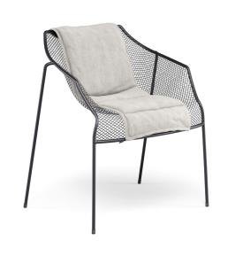 Emu Réf. 486 - Designer: Jean-Marie Massaud Dimensions : l 69 x h 79 x p 61 cm L’idée qui est à la base du projet Heaven est celle de la légèreté, liée à la forme obtenue avec les espaces vides, associés à un croisement de lignes. Le mince profil d’acier tressé est l’élément symbolique de cette collection, qui se distingue par l’harmonie et la proportion de ses lignes. Material: Acier Collection: Heaven Coussins pour cette collection: C/486 Coussin d'assise et de dossier en polypropylène fauteuil