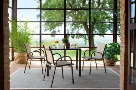 Emu Réf. 1310 Dimensions : l 57 x h 86 x p 60 cm La structure en aluminium assure à cet article une très haute résistance aux agents atmosphériques, à l’humidité et à l’air salin. Tous deux empilables, le fauteuil Holly a une structure en aluminium et acier inox, tandis que l’assise et le dossier sont en EMU-Tex et conçus de manière à se remplacer facilement. Material: Aluminium - Emu-tex Collection: Holly Poids: 5.6 Kg fauteuil