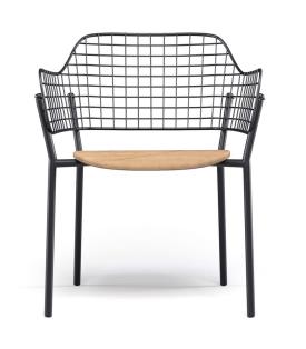 Emu Réf. 616-T - Designer: Florent Coirier Dimensions : l 62 x h 79 x p 57 cm Pour la collection Lyze, Florent Coirier a trouvé son inspiration dans une conception technique et design intemporelle faisant de ces meubles des éléments raffinés et contemporains. L’insolite dossier en acier inoxydable est fixé mécaniquement sur le siège en aluminium et permet diverses combinaisons de couleurs sophistiquées. Material: Acier - Aluminium - Teck Collection: Lyze Poids: 7.40 Kg fauteuil