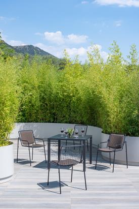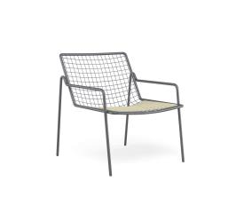 Emu Réf. 792 - Design. Gargano-Cristell Dimensions : l 69 x h 76 x p 70 cm RIO R50 présente une structure en tube d’acier ASFORM, acier de haute qualité doté de capacités mécaniques élevées et d’une haute résistance au poids. Le tube d’acier se caractérise par un « R » bien visible dans la zone de jonction entre l’assise et le dossier. Toutes les soudures de nature structurelle sont effectuées suivant la technologie Ming, qui assure une meilleure résistance aux sollicitations et réduit le risque de rouille, tandis que, pour une plus grande précision, le grillage en ronds d’acier est électrosoudé à la structure. Comme pour tous les produits EMU en acier, il est prévu un pré-traitement de cataphorèse, puis l’application d’une peinture poudre thermodurcissable ; le produit est ainsi recouvert d’une couche de peinture d’une épaisseur homogène, présentant un degré élevé d’adhérence et de résistance. La présence d’embouts en nylon à l’extrémité des pieds permet de protéger et de mieux déplacer le produit. Material: Acier Collection: Rio R50 chauffeuse