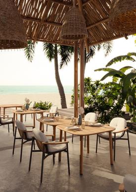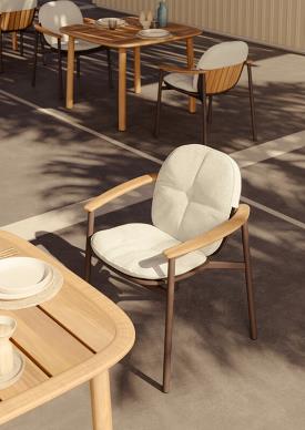 La collection comprend deux versions jumelles: une entièrement en teck, et l’autre dans un material-mix intéressant entre le teck et l’aluminium, synthèse parfaite de la capacité de conception du designer et du savoir-faire d’EMU.