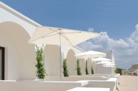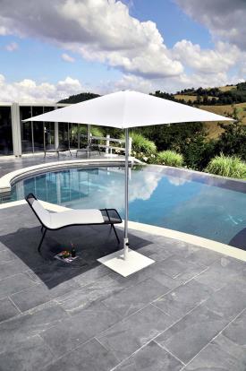 Piazzetta, design Christophe Pillet, est un parasol à tige centrale qui se distingue par sa qualité, sa robustesse et l'harmonie de ses formes. Il s'agit d'un accessoire idéal pour créer des zones d'intimité calmes et ombragées, même dans les petits espaces, qu'ils soient privés ou contract. Une variété de bases disponibles complète sa fonctionnalité.